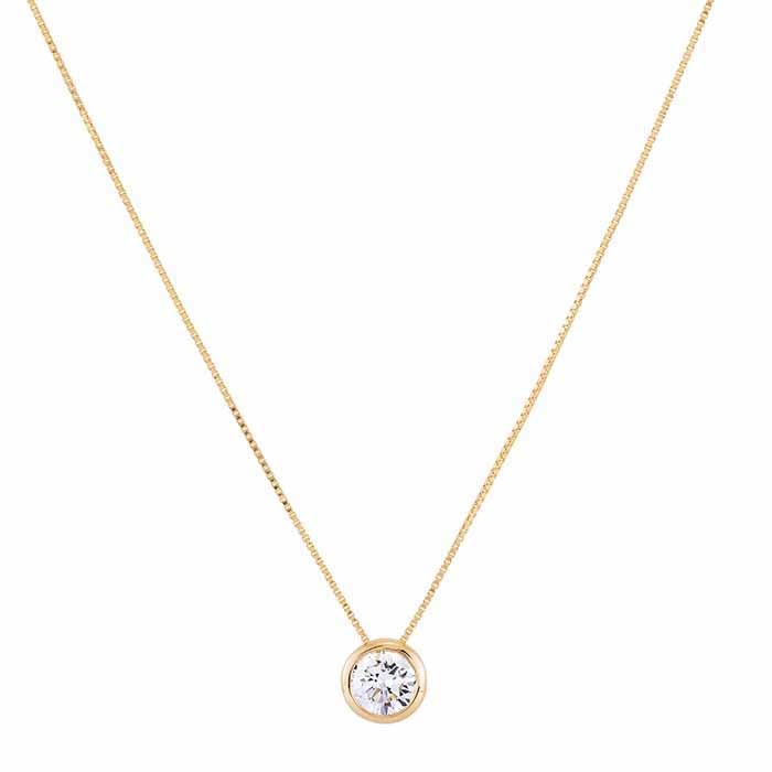 This finished 14-karat yellow gold necklace is set with one round white diamond (I1 clarity/H–I color). The necklace is completed with a lobster clasp and has an adjustable slider.